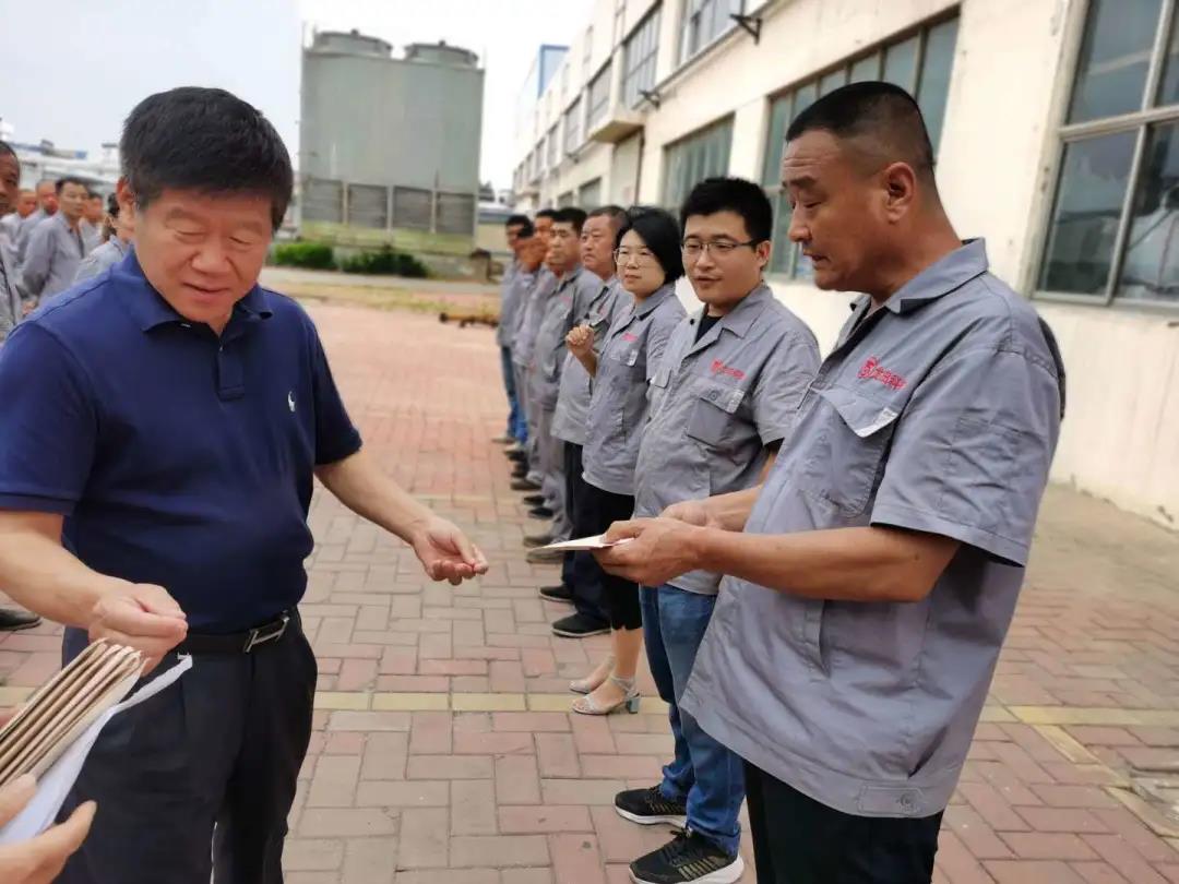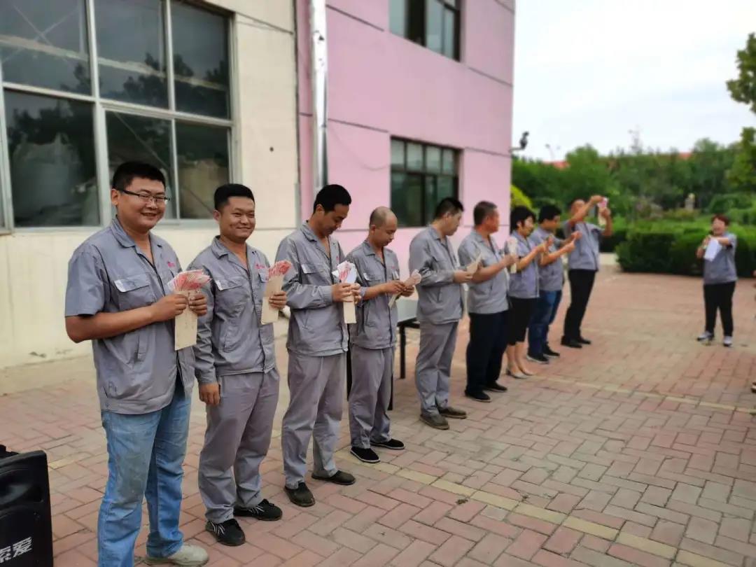 接下來(lái)是6月份工分目標(biāo)達(dá)成獎(jiǎng)勵(lì)發(fā)放環(huán)節(jié),生產(chǎn)系統(tǒng)及行政后勤部門(mén)都達(dá)到了我們最初定制的月度目標(biāo),由董事長(zhǎng)向各部門(mén)負(fù)責(zé)人發(fā)放現(xiàn)金獎(jiǎng)勵(lì),最后由各部門(mén)負(fù)責(zé)人分發(fā)到每位員工手中。