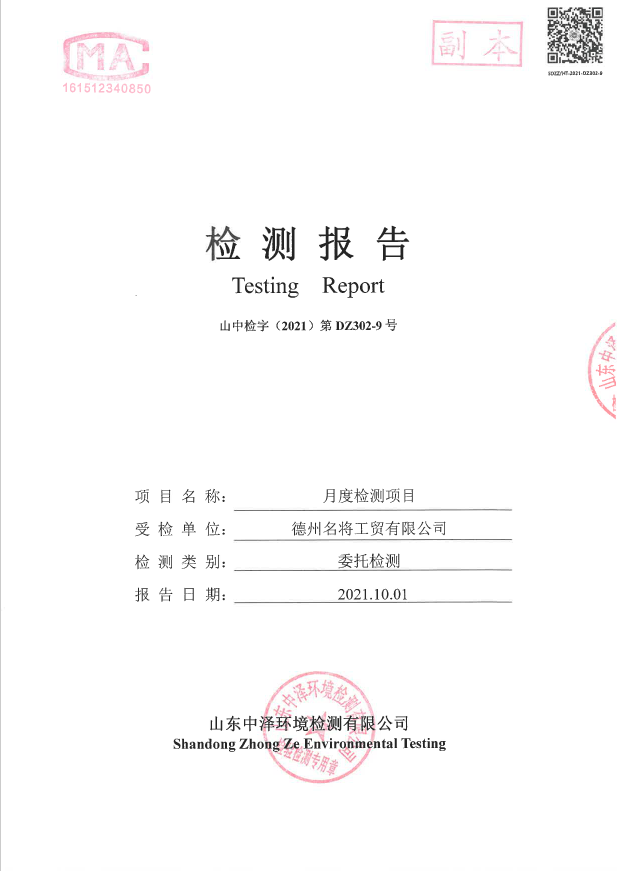 名將工貿(mào)9月份廢水、廢氣檢測公示